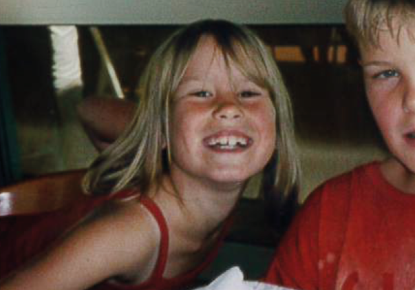 Stine Sofie elsket oppmerksomhet. Hun kunne kle seg ut i de rareste kreasjoner, og med stor iver og innlevelse sang hun og danset rundt. Men Stine var også ei tøff og selvstendig jente. På hennes første skoledag fikk ingen lov til å følge henne til skolen – hun skulle ta bussen helt alene. Mamma fikk til nød kjøre etter med bil. Stine Sofie var trygg og selvsikker da hun ble ropt opp av læreren og endelig kunne gå inn i klasserommet og finne pulten sin. En fornøyd og stolt mamma kunne med god samvittighet kjøre hjem igjen. Trygg på at Stine ville klare seg godt på skolen.